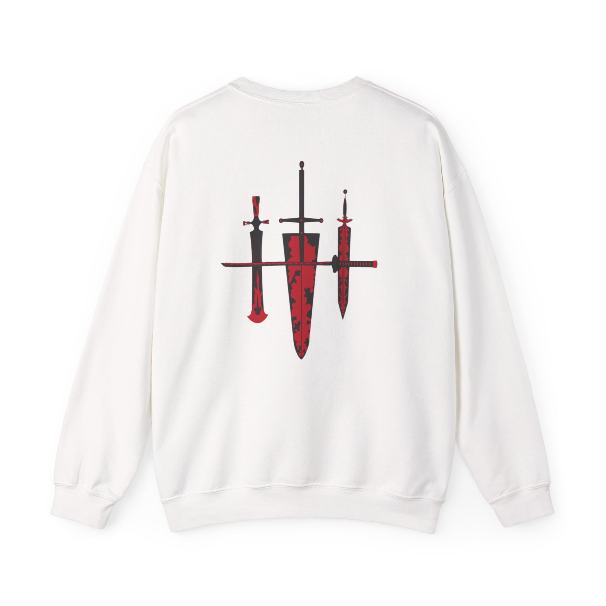 A cozy, midweight crewneck sweatshirt that wears like a trusted companion. This classic-fit sweatshirt brings a quiet, slightly edgy energy with a bold red knife trio graphic on the back—clean lines, a touch of weathered texture, and a minimalist vibe up front. It’s cut from a balanced 50/50 cotton-poly blend that holds shape, resists pilling, and keeps the shoulders squared. Thoughtful details—ribbed collar, reinforced double-needle stitching, tubular knit construction and a soft tear-away label—make it comfortable for long days and late nights alike. Ethical sourcing and OEKO-TEX certified dyes mean you’re choosing something made with care. Wear it to layering-weather walks, creative meetups, or when you want an understated, slightly rebellious statement piece.